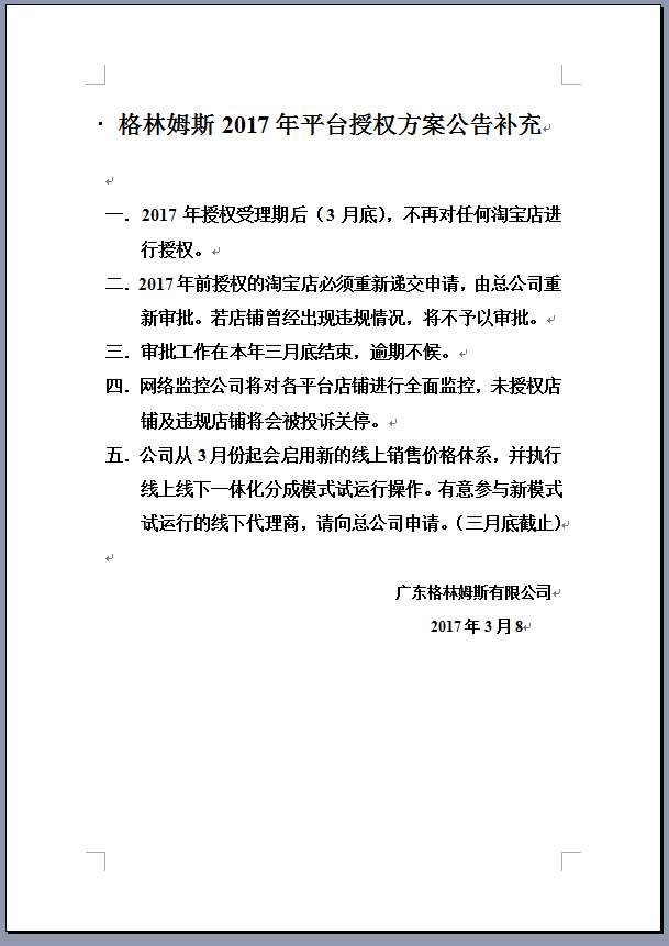 格林姆斯2017年平台授权方案公告补充