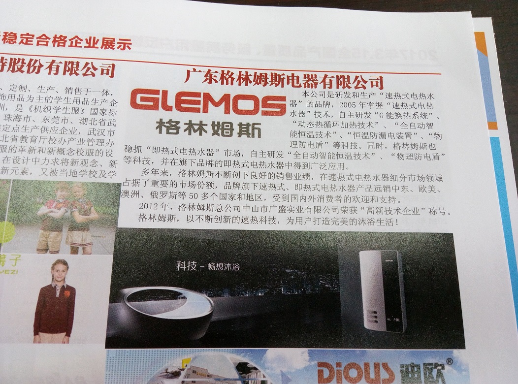 质量是企业的生命,是企业赖以发展的根本。长期以来格林姆斯十分注重产品的质量管理,努力为广大消费者、代理商和经销商提供最优质的产品和服务。近日,国家质量监督检验检疫总局(简称:国家质监总局)经过市场调研、监督抽查、评定等环节后,评选质量优秀的企业,并刊登在《 中国质量技术监督》(官方报刊)上,格林姆斯光荣的入选!并在质量技术局的报刊上成为 全国3.15质量稳定合格展示企业品牌。