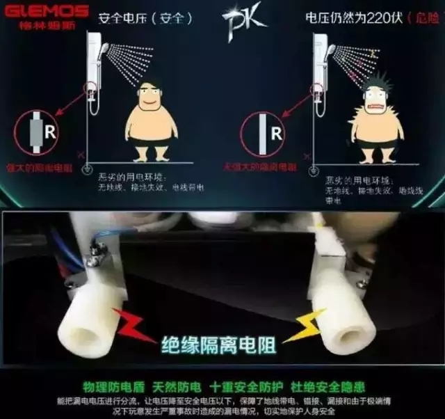 格林姆斯物理防电盾技术(更获得国家专利证书),利用物理原理,通过特殊设计在热水器的进出口水之间形成一个强大的水电阻(隔离电阻),把漏电进行分流,让电压降到安全电压以下,10重安全壁垒,保障你的人生安全,如此安全的电热水器你还有什么担心!