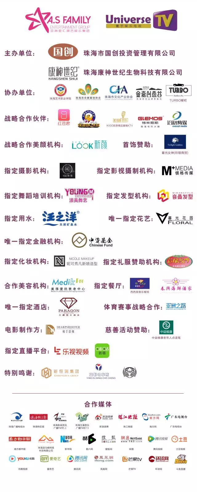 此次亚洲小姐竞选全国校园赛珠海中山赛区品牌共赢单位有:
