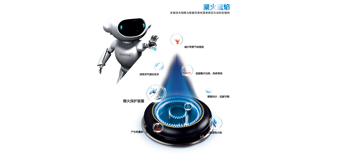 四、热电偶熄火保护装置,灶具意外熄火后,自动关闭气源。
